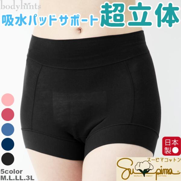 スーピマコットン 超立体ショーツ 軽失禁パッドサポート 尿漏れパンツ 女性用 レディース 日本製 大きいサイズあり 生理用パンツ