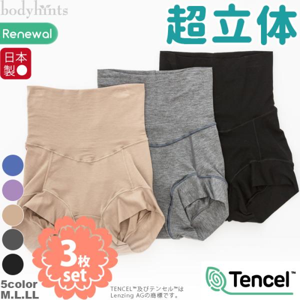 テンセル(TM)繊維 超立体ショーツ3枚セット ハイウエスト丈 ヒップずり上がらない腹巻パンツ 女性用パンツ 冷えとり 下着 肌着