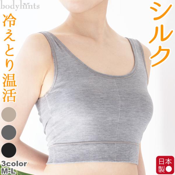 シルク片袋編み ブラトップ ノンワイヤー カップ付 ブラジャー ソフトブラ ハーフトップブラ 肌着 汗取り 冷え取り 絹 日本製