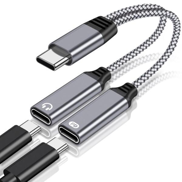 タイプC 二股 2in1 イヤホン 変換アダプタ デュアルUSB-Cヘッドフォン&充電アダプタ DAC搭載 24bit/96KH