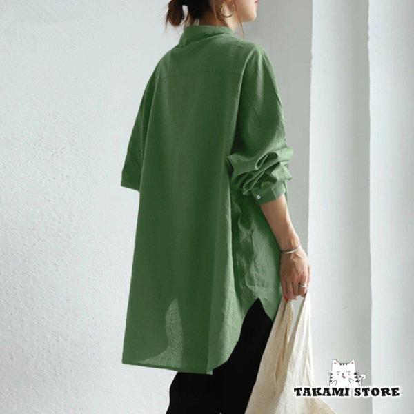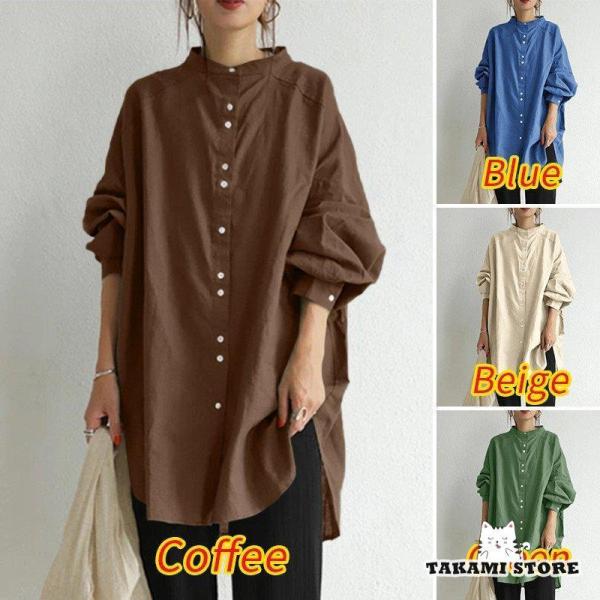 チュニック トップス レディース 綿麻シャツ ブラウス tシャツ ロング 長袖 春 無地 大きいサイズ ドルマン袖 40代 ゆったり 体型カバー シンプル 部屋着 50代