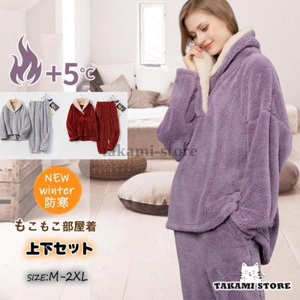 パジャマ レディース 冬 ルームウェア 上下セット 開襟 無地 部屋着 長袖 セットアップ 厚手 もふもふ 防寒 カジュアル おしゃれ カップル 秋冬