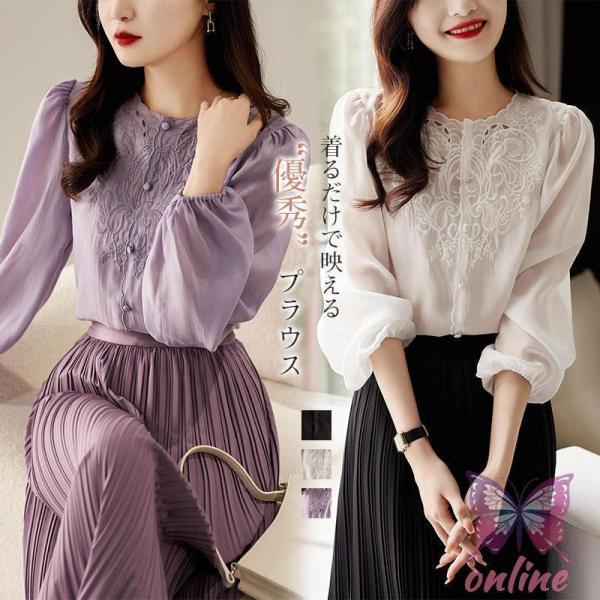 ブラウス レース レディース トップス 長袖 透け 刺繍シアートップス ボリューム袖 きれいめ 上品 フォーマル カジュアル 大人 可愛い 秋新作