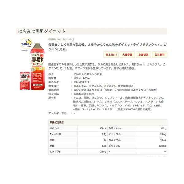 毎日おいしく黒酢が飲める、まろやかなりんご味のダイエットタイプドリンクです。ビタミンC充実。