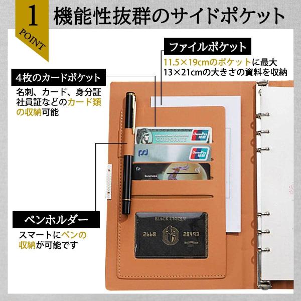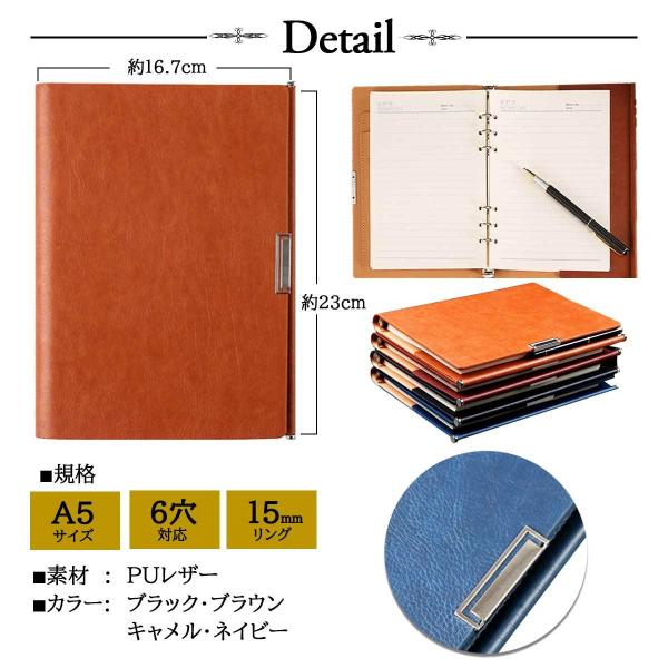 A5サイズ、6穴リング、便利な内ポケット付き