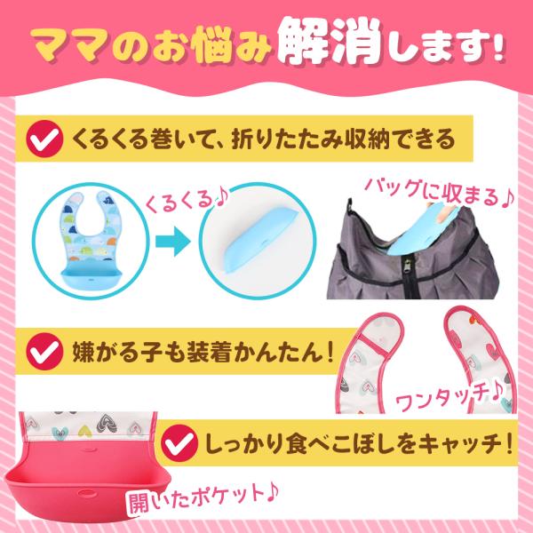 お食事エプロン シリコン 柔らかい マジックテープ 袖なし 保育園 洗える 防水 コンパクト