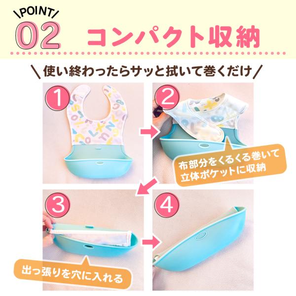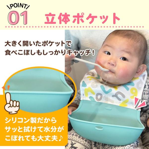 ・ポケット部分がシリコンでなのでしっかり食べこぼしをキャッチ