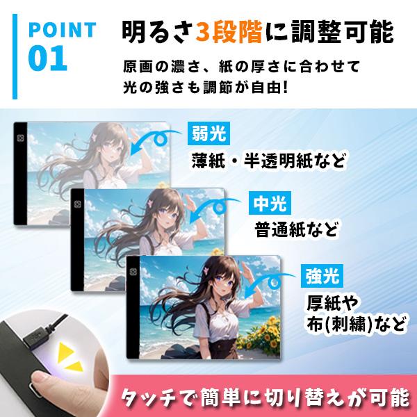 トレース台 a4 薄型 led 安い 3段階調光 usb パネル ボード ライトテーブル ボックス