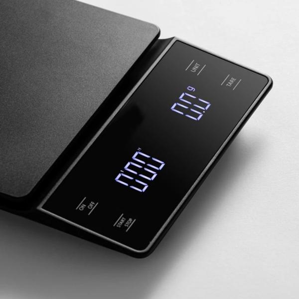 抽出時間と分量を正確に測れる珈琲専用のスケール。