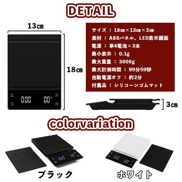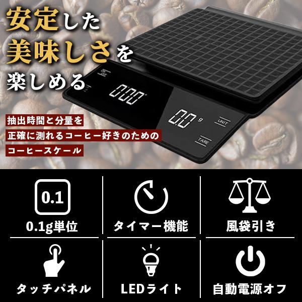 コーヒースケール キッチン おしゃれ 3kg デジタル 風袋引き タイマー付き はかり