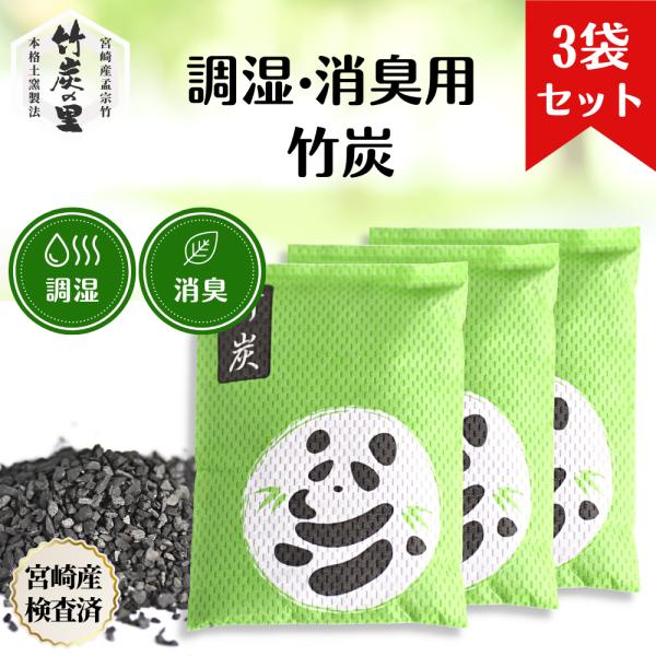 調湿・消臭用竹炭 3個セット 宮崎産竹炭 湿気によるカビや乾燥による劣化を防ぐ 革製品 紙製品 写真 精密機械 など湿気と乾燥に弱いモノの保管に 半永久的に調湿