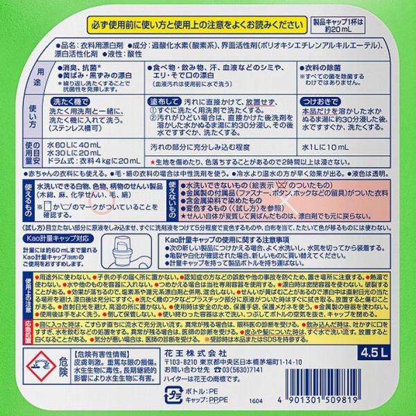 (検索用:Kao Kao ワイドハイターEXパワー 4.5L 509819環境安全用品 清掃用品 洗濯用品 花王 株)