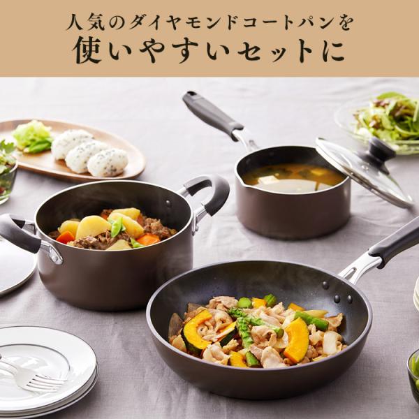 (検索用: IH対応 ガス火対応 フライパン 鍋 片手鍋 両手鍋 なべ 蓋 ガラスふた セット フライパンセット 鍋セット ダイヤモンドコート ガス火 IH 16cm 20cm 26cm 4967576525893 4967576525909 4967576525916 人気 おすすめ )
