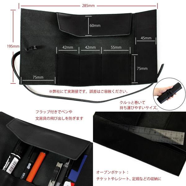 人気の姫路レザーを贅沢に使用したロールペンケース