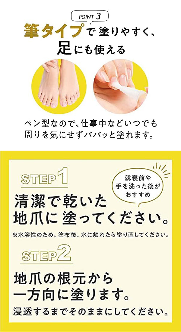 塗りやすい筆タイプで、足の爪やお子様の爪にも◎
