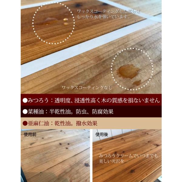 蜜蝋、菜種油、亜麻仁油の天然素材だけで作られたエコワックスです。