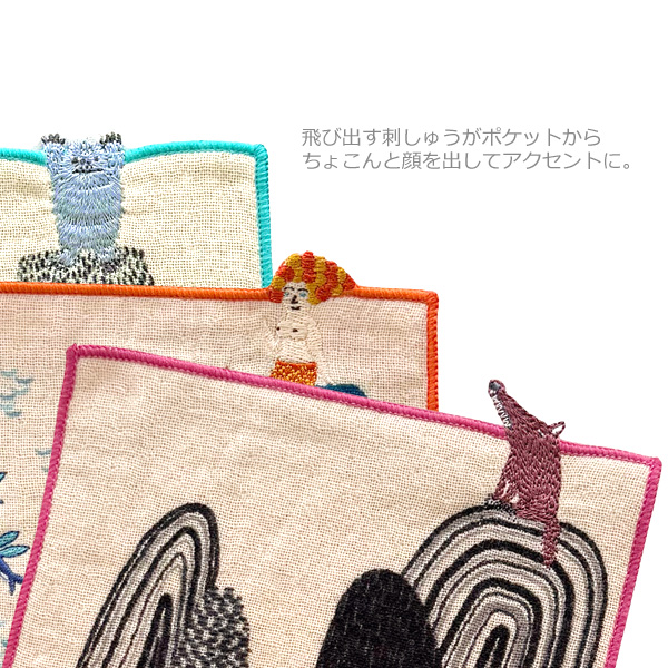 MiW ちいさなポケットハンカチ ハーフハンカチ 動物 アニマル 森田MiW×楠橋紋織コラボ ミニタオルハンカチ イラスト かわいい おしゃれ 不思議 定形外発送