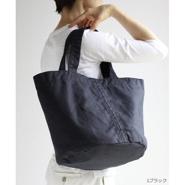 しっかり感が程よいキャンバス生地(14oz相当)で作ったシンプルなトートバッグ。