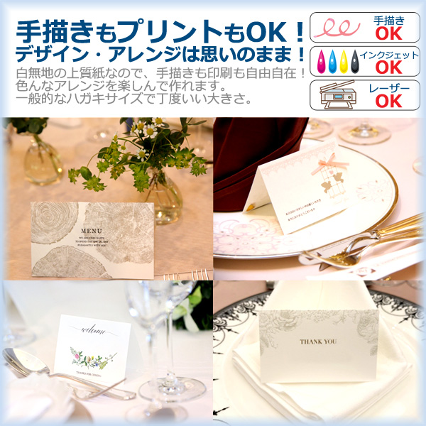 無地 席札 ハガキサイズ 50枚 上質紙 手作り 結婚式 二次会 パーティー 紙席札 インクジェット レーザープリンター対応 無地カード 印刷用 メール便発送