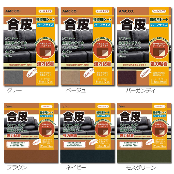 合皮 補修 シート ハーフサイズ シールタイプ 簡単補修シリーズ 定形外発送