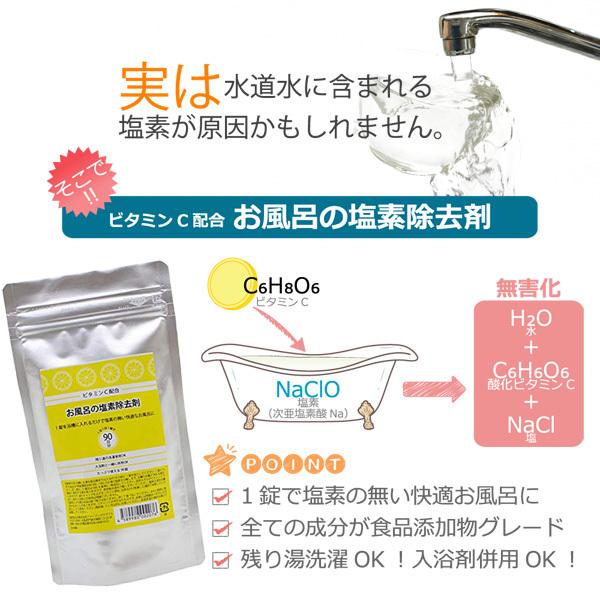 お風呂の塩素除去剤 90錠×2袋 塩素除去 お風呂 180日分 浴槽用脱塩素剤 ビタミンC配合