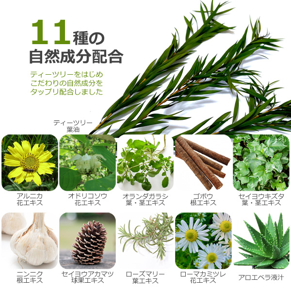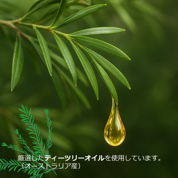 ティーツリーの精油配合。低刺激でもしっかりした泡立ち。
