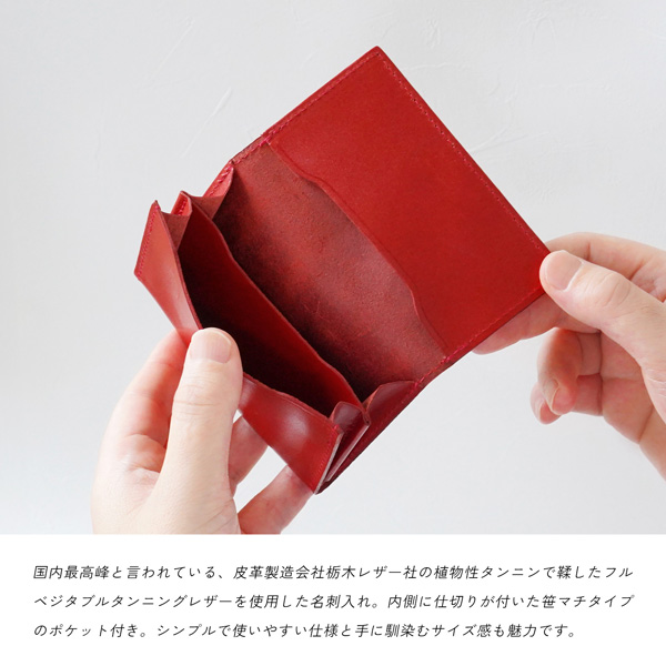 国内最高峰といわている、皮革製造会社栃木レザー社の植物性タンニンで鞣したフルベジタブルタンニングレザーを使用した名刺入れ。