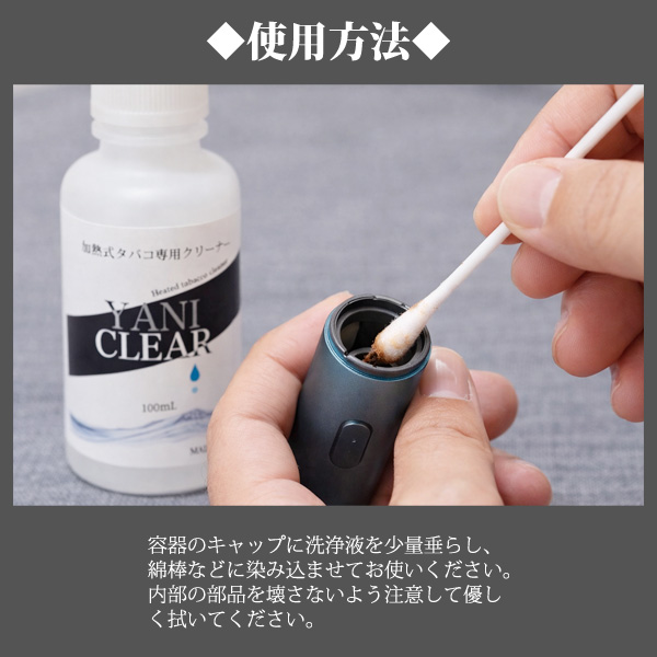 ヤニ取りに適した加熱式タバコ専用設計の洗浄液です。
