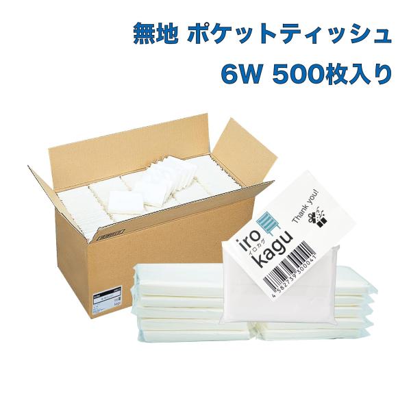 ポケットティッシュ 無地 6W(1袋2枚重ね6枚入り) 500個セット ティッシュ 白 ティッシュ配り 業務用 販促用 業販用 宣伝用 ノベルティ用 大容量