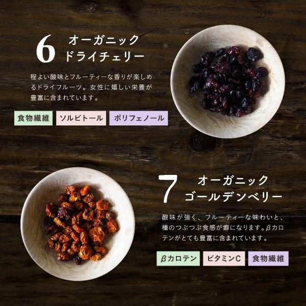 【原材料】有機トンプソンレーズン(アメリカ製造)、有機サルタナレーズン、有機ドライクランベリー(有機クランベリー、有機砂糖、有機ひまわり油)、有機ダイスドデーツ(有機デーツ、有機オーツ粉)、有機ドライブルーベリー(有機ブルーベリー、有機砂糖、有機ひまわり油)、有機ドライチェリー(有機チェリー、有機砂糖、有機ひまわり油)、有機ゴールデンベリー