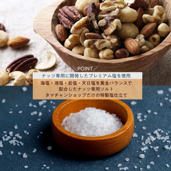 【有塩タイプ】クルミ(アメリカ産)・アーモンド(アメリカ産)・カシューナッツ(インド産)・ピーカンナッツ(アメリカ産)・マカデミアナッツ(マラウイ・ケニア産)・ヘーゼルナッツ(トルコ産)・ピスタチオ(アメリカ産)・食塩
