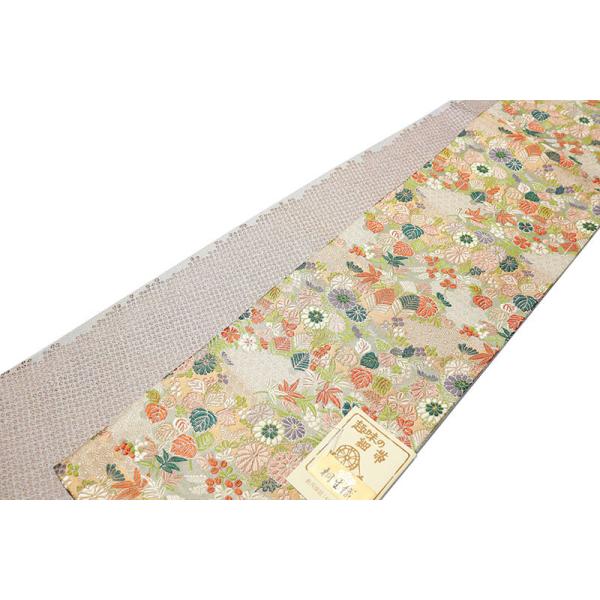 リバーシブル半巾帯 古典草花 ベージュ 疋田(鹿の子) グレー ポリエステル100% お仕立て上がり 半幅帯 細帯 長尺 日本製