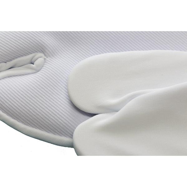 表地に静電気の起こりにくい繊維、東レパレルを使用した5枚こはぜの白足袋です。静電気によるほこりの吸着がないので汚れにくくいつまでも白度が低下しません。吸汗性もよく伸縮性によって足にピッタリフィットし、一年中爽やかに着用していただけます。裏地は晒(綿)で優しい肌触りです。また、シワ・縮み・型崩れが少なく洗濯も簡単。その上アイロンは不要でお手入れも簡単です。