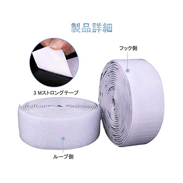 ・【セット内容】ファスナーテープ×2巻(フック側×1巻+ループ側×1巻)、カラー:ホワイト、幅:約20mm、全長:3m。
