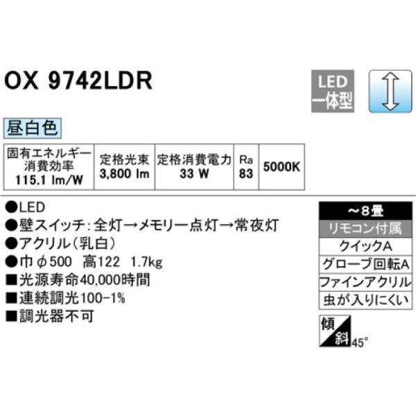 LEDシーリングライト オーデリック OX9742LDR 8畳用 昼白色 調光