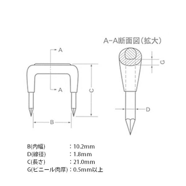 ・適用電線がない場合は、寸法表を参考にひとサイズ大きなステップルをご使用ください。