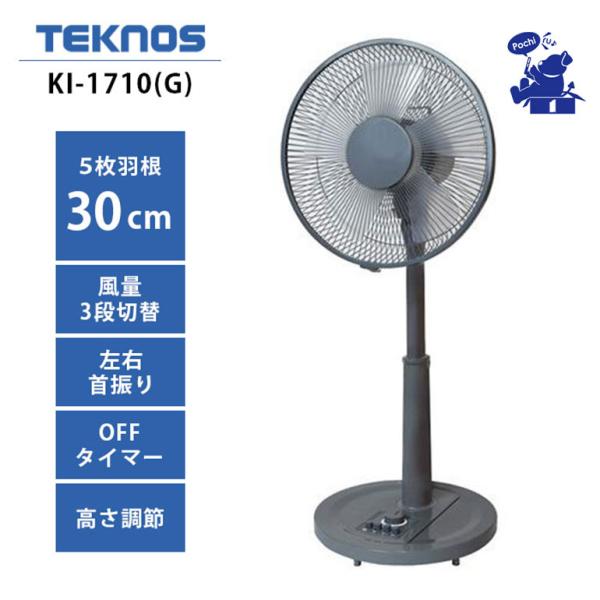 30cmリビングメカ扇 グレー フラットガード 本体PP 羽根PP KI-1710G テクノス TEKNOS