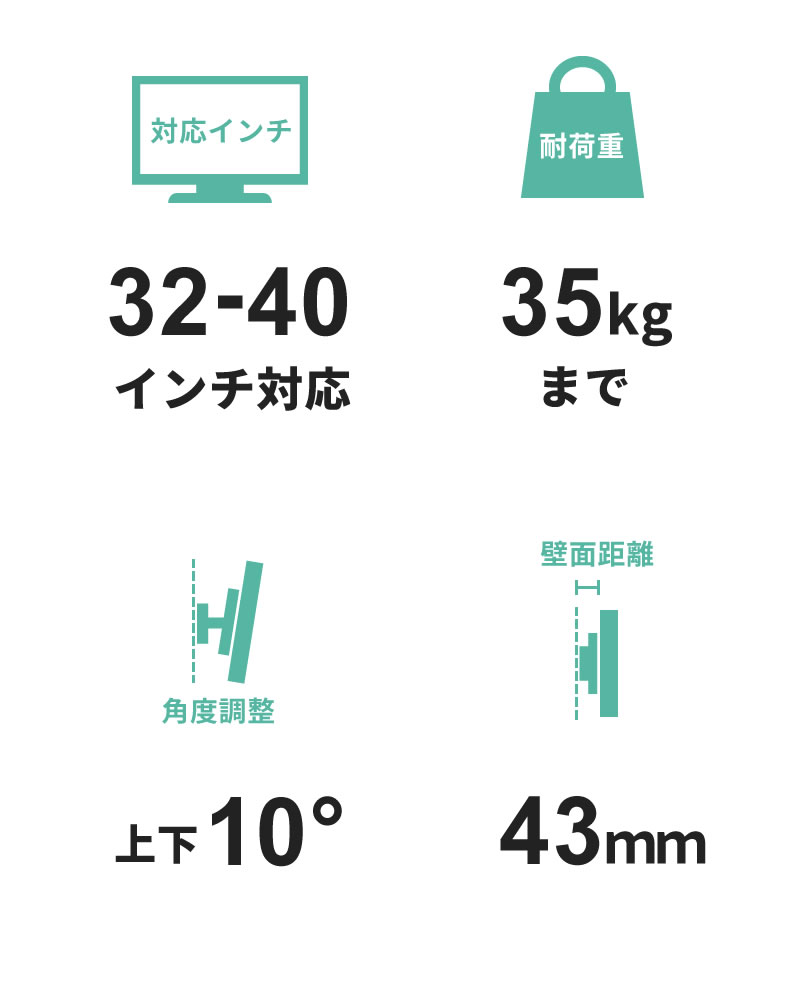 32インチ〜40インチ対応 壁掛け金具(調整タイプ)