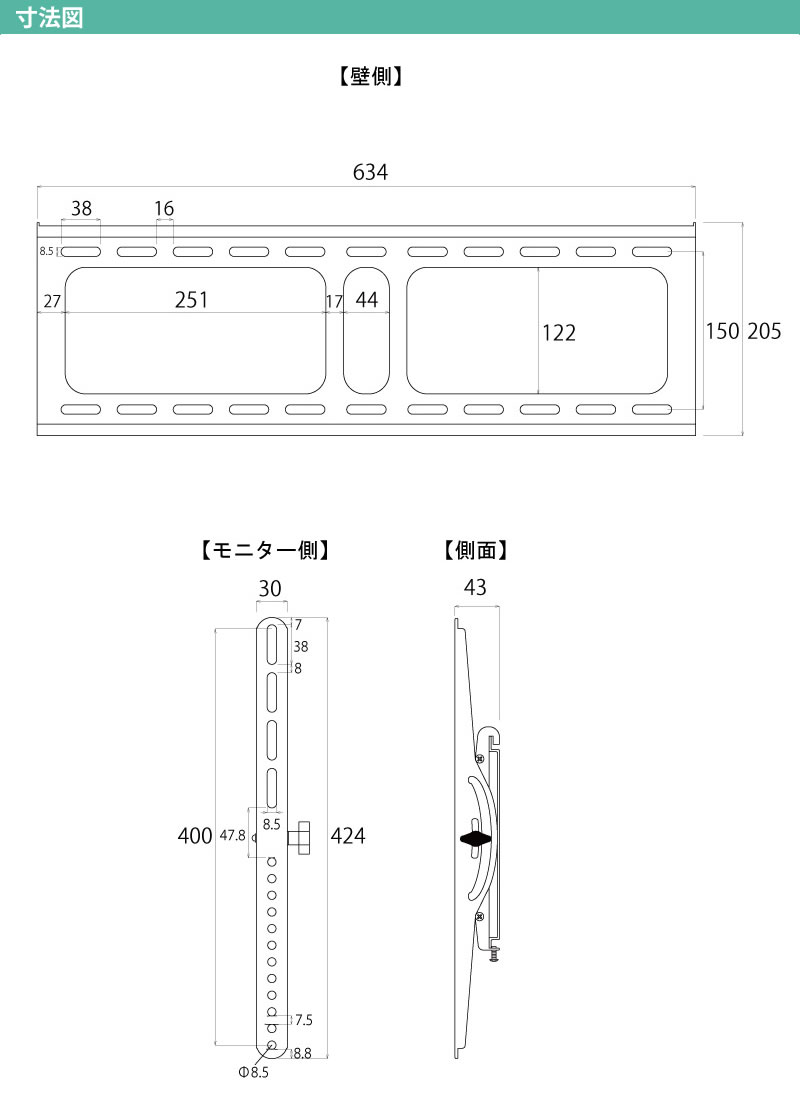 40インチ〜70インチ対応 壁掛け金具(調整タイプ)