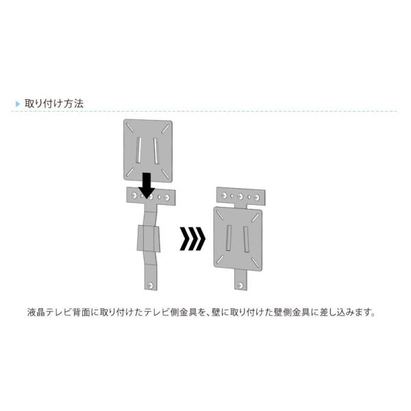 ■壁に取り付けた「壁側取付金具」の溝に液晶テレビの背面に取り付けた「テレビ側金具」を差し込んで使用します。