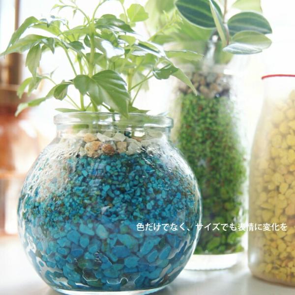 カラーサンドで植えこんだ、レトロ感のある小さなボトルグリーン。