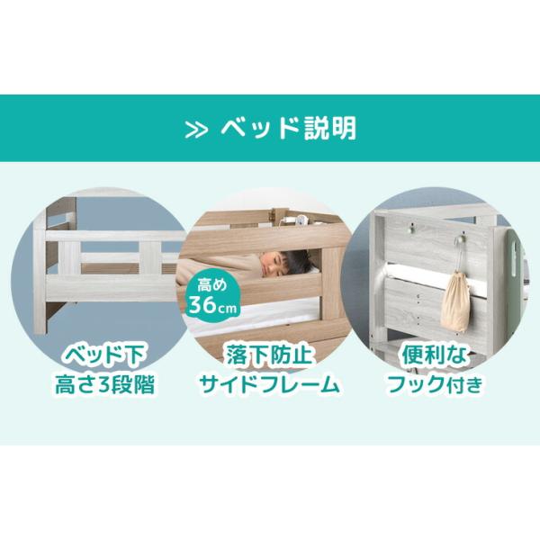 20日+5% 二段ベッド マットレス付き 三つ折り 高反発 ベッド 宮付き 子供ベッド 2段 ロータイプ マット付 高さ調節 コンセント ライト ウレタン 超大型