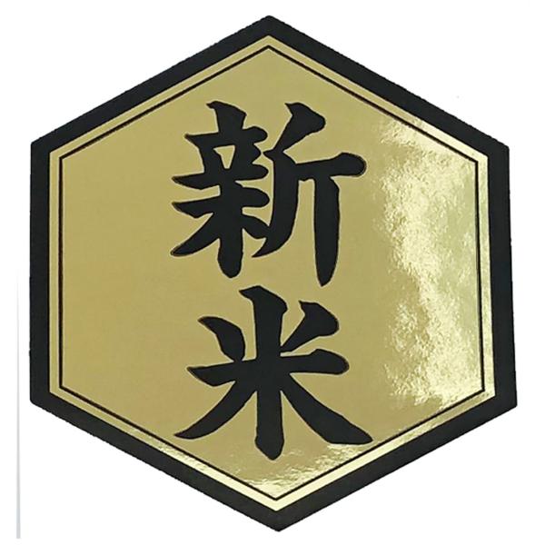 新米シール 100枚 金ツヤ×黒 ヘキサゴン サイズ:4.5×5cm