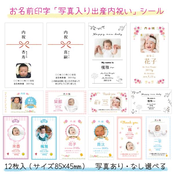 【名入れ】出産内祝いシール(12枚入/サイズ85×45mm)写真入・写真なし セミオーダーシール 挨拶シール プチギフト