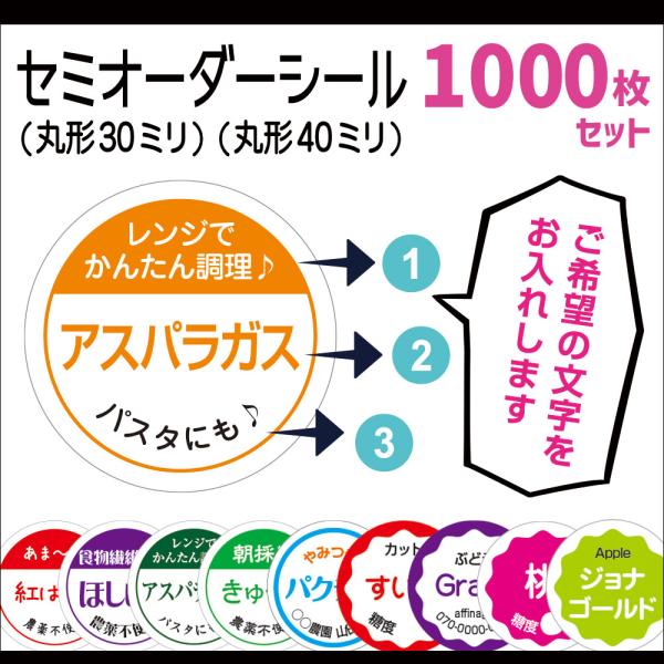 野菜セミオーダーシール 1000枚セット(プラス予備付き)サイズ30ミリ/40ミリ選べる
