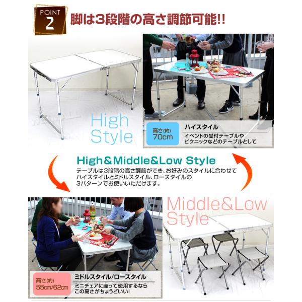 (アルミ 折り畳み 折りたたみテーブル アウトドアテーブル ハイテーブル ローテーブル 大人数 ソロキャン 運動会 バーベキュー ピクニックテーブル BBQ アウトドア用 テーブル お花見 準備 おしゃれ 人気 おすすめ 送料無料)
