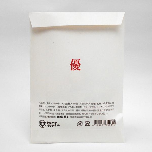 オリジナルデザインの紙製平袋にチョコが10粒入っています。