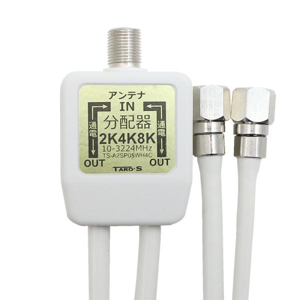 アンテナ分配器 2分配 ケーブル一体型 0.5m 2K 4K 8K 地デジ BS CS CATV 対応 ケーブル付き 全端子電流通過型 ホワイト TS-A2SP05WH4C TARO'S 送料無料