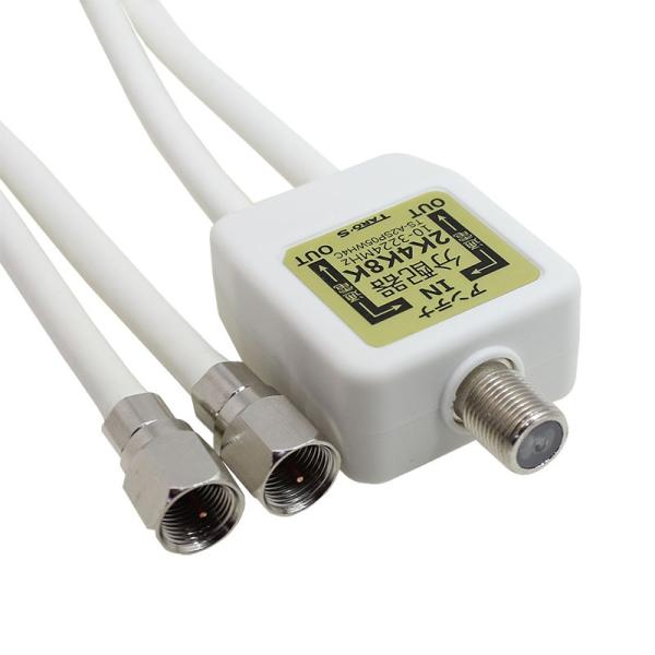 アンテナ分波器 4K8K放送 ケーブル付き 出力 ケーブル一体型 3224MHz BS CS 地デジ CATV 対応 ホワイト 2.5C極細ケーブル 15cm TS-ABSN03WH TARO'S 送料無料