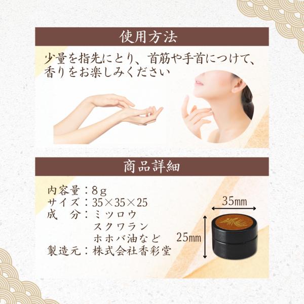 香彩堂 練り香水 白檀 極品白檀 伽羅 龍涎香 沈香 麝香 極品木蓮 極品金木犀 選べる8種類 / 京都 メンズ レディース ムスク 京都香彩堂 プレゼント ギフト 保湿
